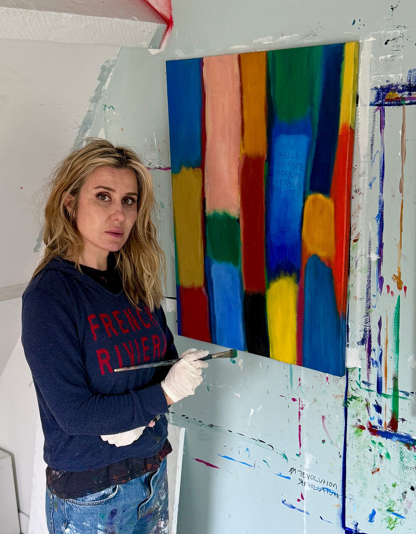 Ma nouvelle série prend forme petit à petit dans l’atelier. Le thème des “Échos” me permet d’approfondir ma recherche sur la dualité visible/invisible sous un angle nouveau qui explore notre rapport intime au temps. Les bandes verticales deviennent des flux temporels où les couleurs se répondent, comme des souvenirs qui s’influencent mutuellement.